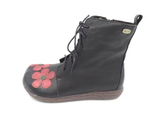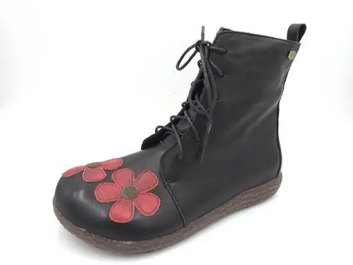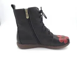 Yksityiskohdat: vetoketju sisäsyrjällä, nauhat edessä, kukkakoristelu