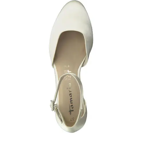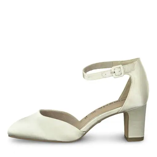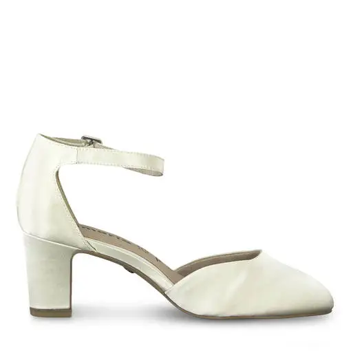 Mukava ja kaunis staiininen korkokenkä, nilkkaremmillä. Sopii loistavasti hääkengäksi.