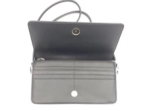 Laukun sisällä on avotasku, vetoketjullinen tasku ja korttikoteloita. Laukku sulkeutuu magneetilla. Olkahihnan pituutta voi säätää tai sen voi ottaa kokonaan pois.