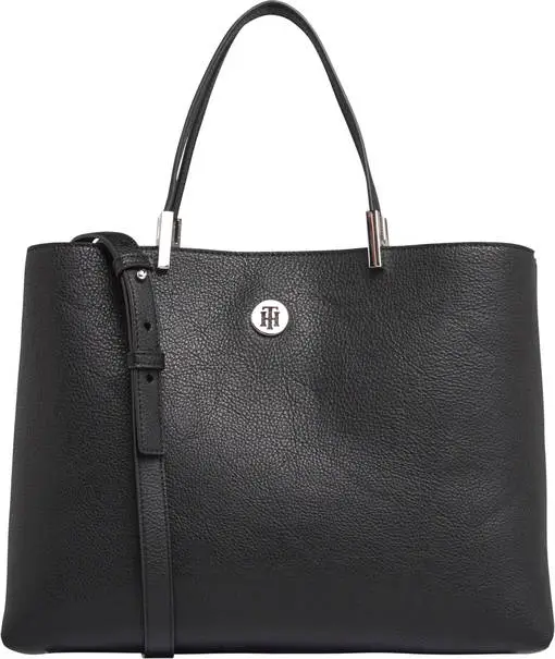 Tommy Hilfiger musta TH Core Satchel -laukku sopii niin töihin kun iltamenoihinkin. Päällä tyylikäs logo. Laukun sisällä on iso avotasku jonka keskellä vetoketjullinen tasku. Laukku sulkeutuu magneetilla. Olkahihnan pituutta voi säätää tai sen voi ottaa kokonaan pois. Materiaali on pehmeää, laadukasta keinonahkaa.