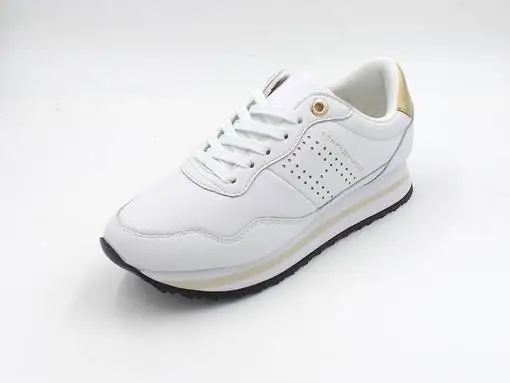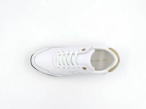 Yksinkertaiset ja niin tyylikkäät nahkaiset Tommy Hilfiger -tennarit, joissa kullanhohtoiset yksityiskohdat, nauhakiinnitys ja pitävä kumipohja.