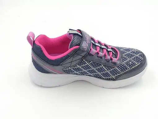 Todella kevyt, jalkaan sujautettava, rento ja sporttinen lenkkitossu Skechers S Lights Glimmer Kicks vilkkuvilla valoilla ja korostusompeleilla.